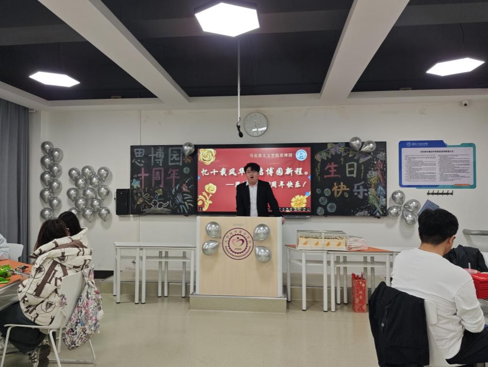 为回顾社团十年发展历程、凝聚社员力量、深化马克思主义理论学习实践,进一步增强社团向心力和凝聚力。马克思主义学院学生社团于2025年10月30日14点30分在业精楼B404举办思博园成立十周年活动。活动以“忆十载风华,启博园新程”为主题,马克思主义学院院长助理杨帆,社团指导教师及社团成员参加活动。